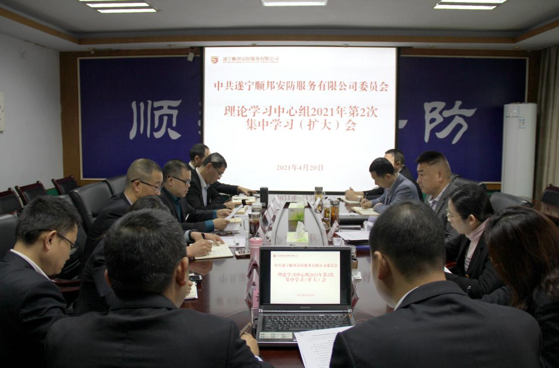 ? ? 4月20日中共遂寧順邦安防服務(wù)有限公司委員會(huì)理論學(xué)習(xí)中心組召開2021年第2次集中學(xué)習(xí)(擴(kuò)大)會(huì),會(huì)上圍繞“黨史學(xué)習(xí)教育、維護(hù)國家安全”主題,組織學(xué)習(xí)習(xí)近平《論中國共產(chǎn)黨歷史》、《中華人民共和國保守國家秘密法》。黨委書記、執(zhí)行董事、總經(jīng)理唐清華主持會(huì)議。