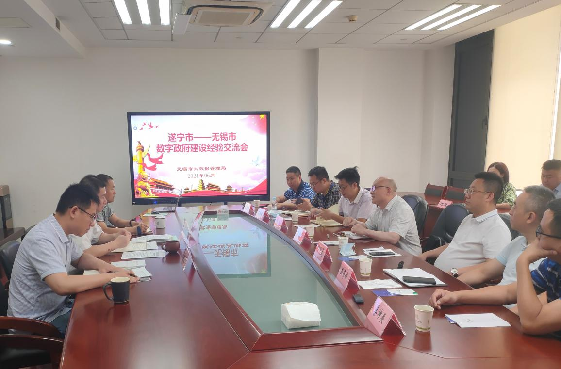 ? ? ? ? 6月8日,考察組前往無錫市大數(shù)據(jù)管理局考察學(xué)習(xí),雙方就“公共數(shù)據(jù)管理”進(jìn)行了專題探討。經(jīng)了解,無錫市大數(shù)據(jù)管理局積極制定出臺《無錫市公共數(shù)據(jù)管理辦法》,總結(jié)出“以數(shù)據(jù)治理聯(lián)通數(shù)據(jù)孤島,以數(shù)據(jù)資源化彰顯數(shù)據(jù)價值,以多元參與凝聚治理合力,以全生命周期形成管理閉環(huán)”4大亮點經(jīng)驗,在規(guī)范公共數(shù)據(jù)管理、保障和服務(wù)民生、促進(jìn)經(jīng)濟(jì)社會發(fā)展等方面形成了一套行之有效的操作模式??疾旖M表示,無錫市的成功做法和創(chuàng)新舉措,為數(shù)字遂寧建設(shè)提供了寶貴經(jīng)驗,今后將暢通信息渠道,持續(xù)深化交流,奮力推動數(shù)字遂寧建設(shè)再上新臺階。